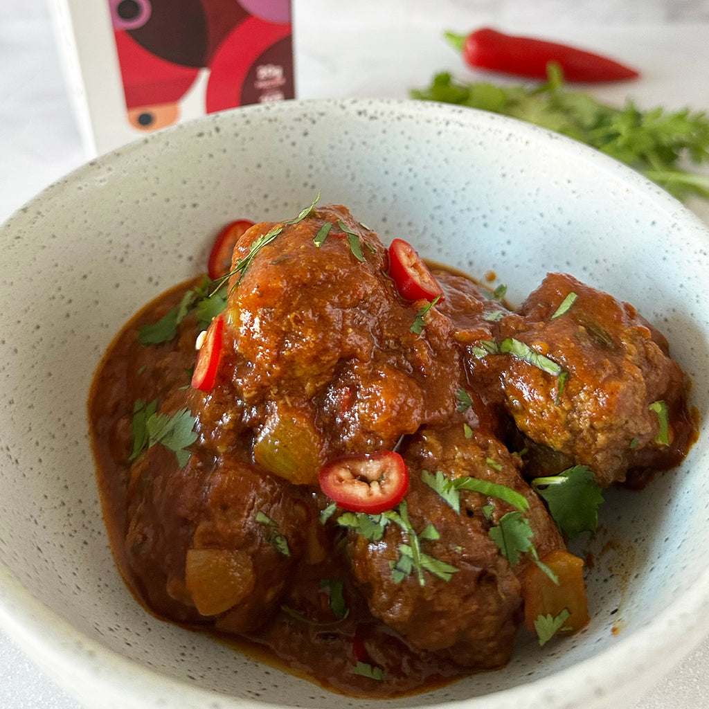 - Into the pan, with the other half of the mixture, add the Freja broth, passata and sugar or mango chutney and bring to the boil.
