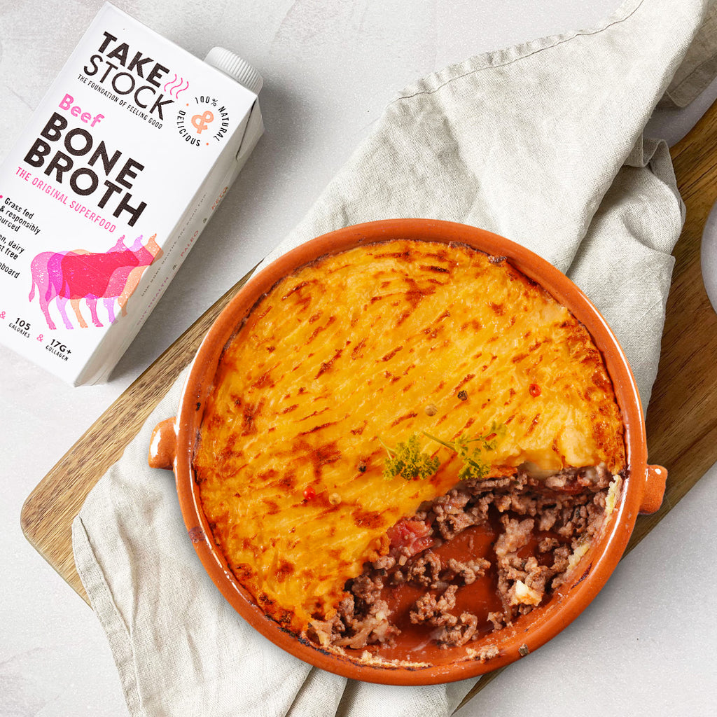 - Add your Freja Beef Bone Broth, mixed herbs, ketchup, Worcestershire sauce and some seasoning, return the onion mixture to the pan and simmer gently for a minimum of 45 minutes. The longer you can simmer the more intense the flavour!