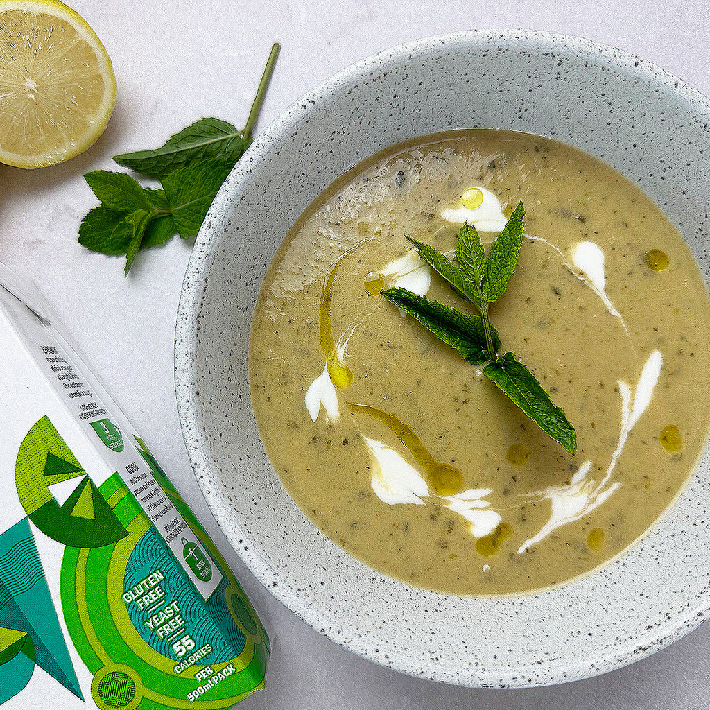 - Once soft add the Freja broth, half the mint and the lemon juice and simmer for 10 mins. Add the courgettes and simmer for another 10.