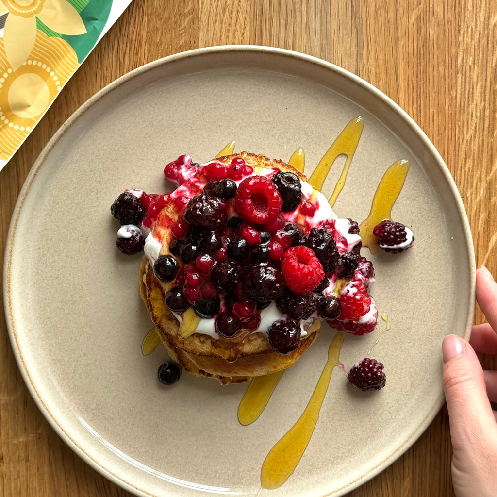 Upgrade your breakfast with Vanilla Protein Pancakes made with our Vanilla Collagen Protein Shake. Packed with 32g protein and natural collagen per serving, they’re quick to make and perfect topped with fruit, yogurt, or nut butter.