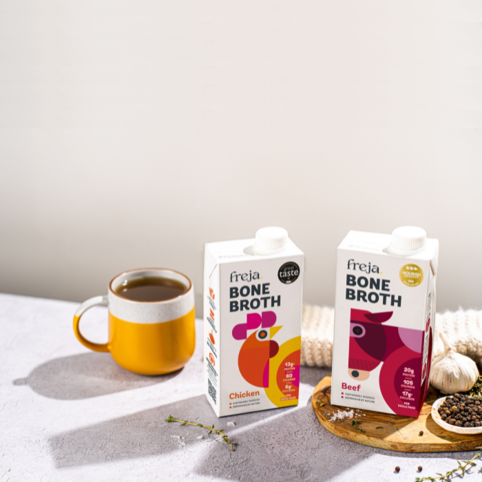 “Freja Bone Broths are very much part of my pantry staples for when I don’t have any fresh to hand. I love their clean processing, authenticity and they taste great even in a cup as a 3pm hanger beater.”