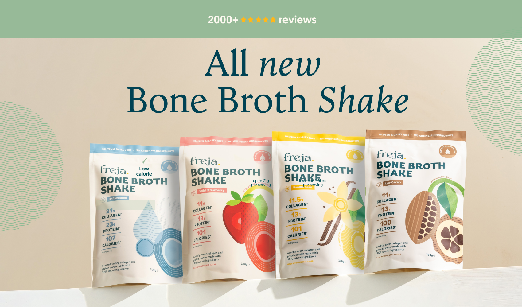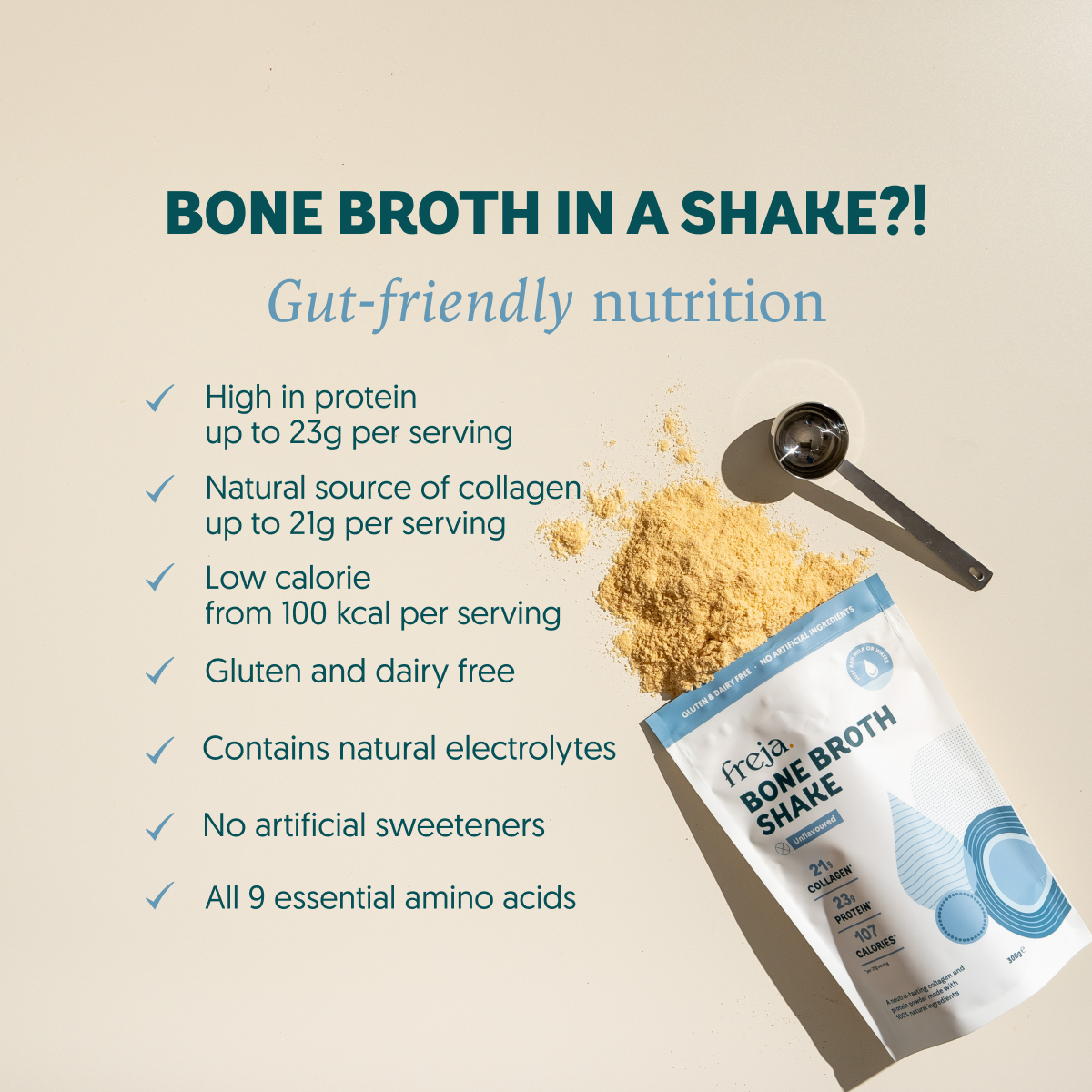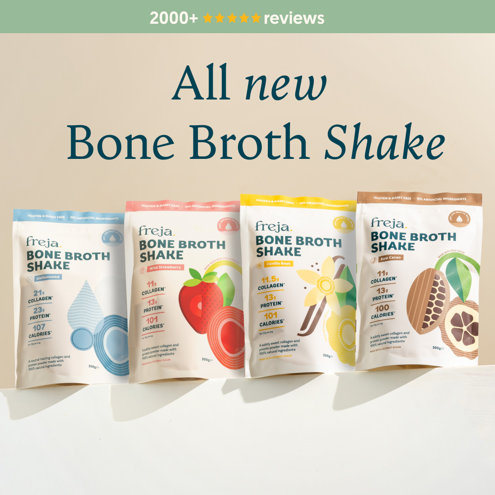 Whether you’re on a specific diet or trying to cut down on processed foods, the Freja Bone Broth Shake is gluten & dairy-free.