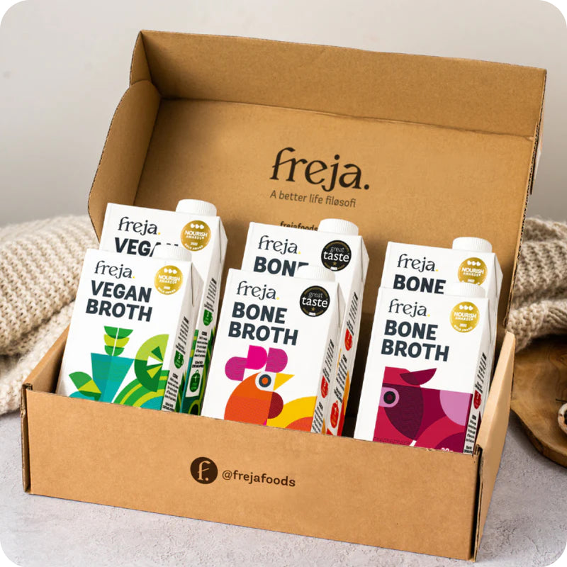 We’re Ed and Jess, the husband-and-wife team behind Freja. Fed up with the amount of ultra-processed ‘health’ foods on supermarket shelves, and frustrated with the lack of delicious, nutritious fast food to feed our family of six, we wanted a genuinely healthy alternative we could make into dinner in minutes. Something delicious, with no additives, and that’s cupboard-friendly and sustainable too.
