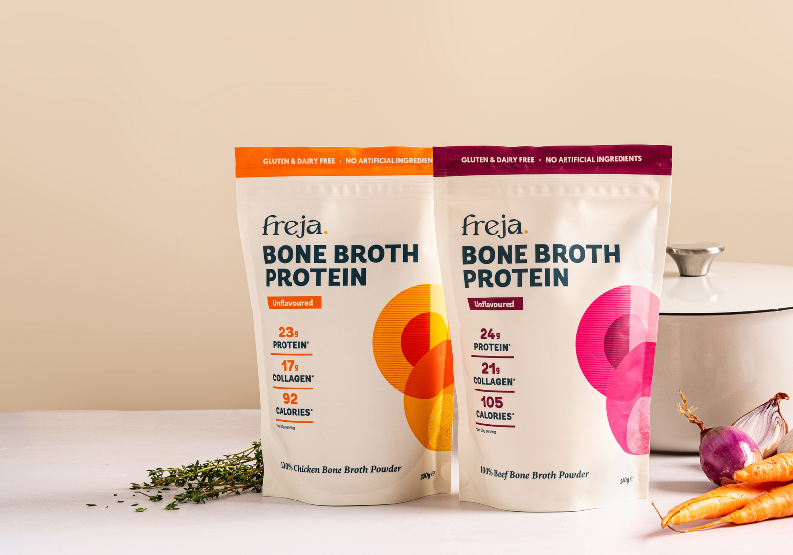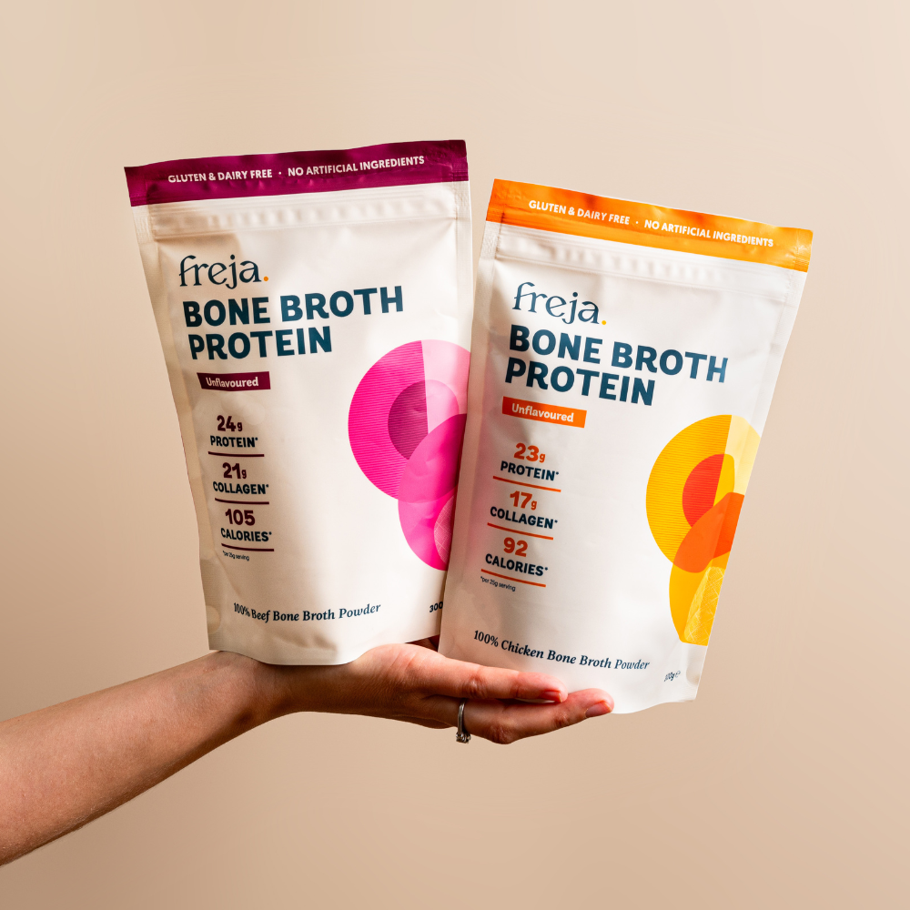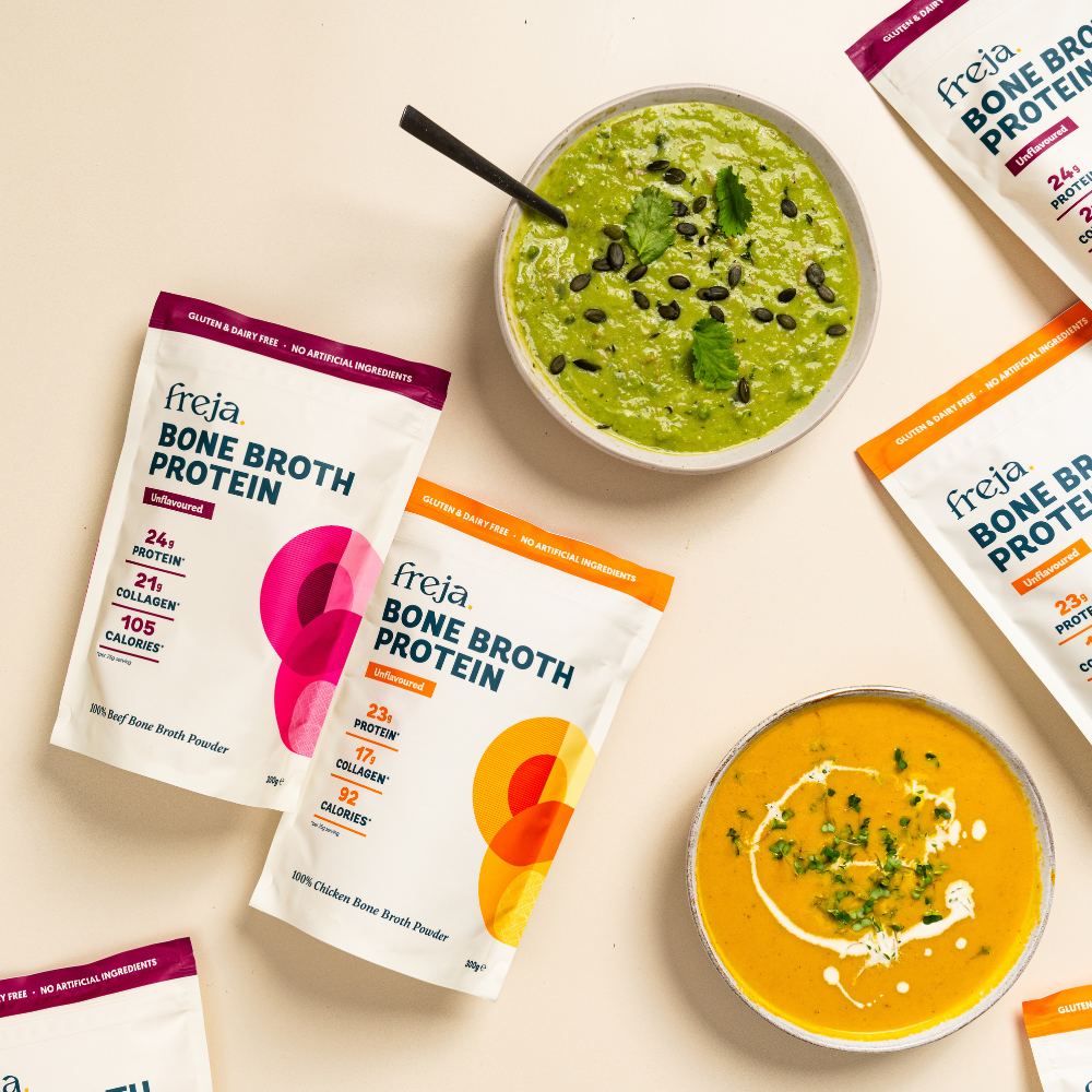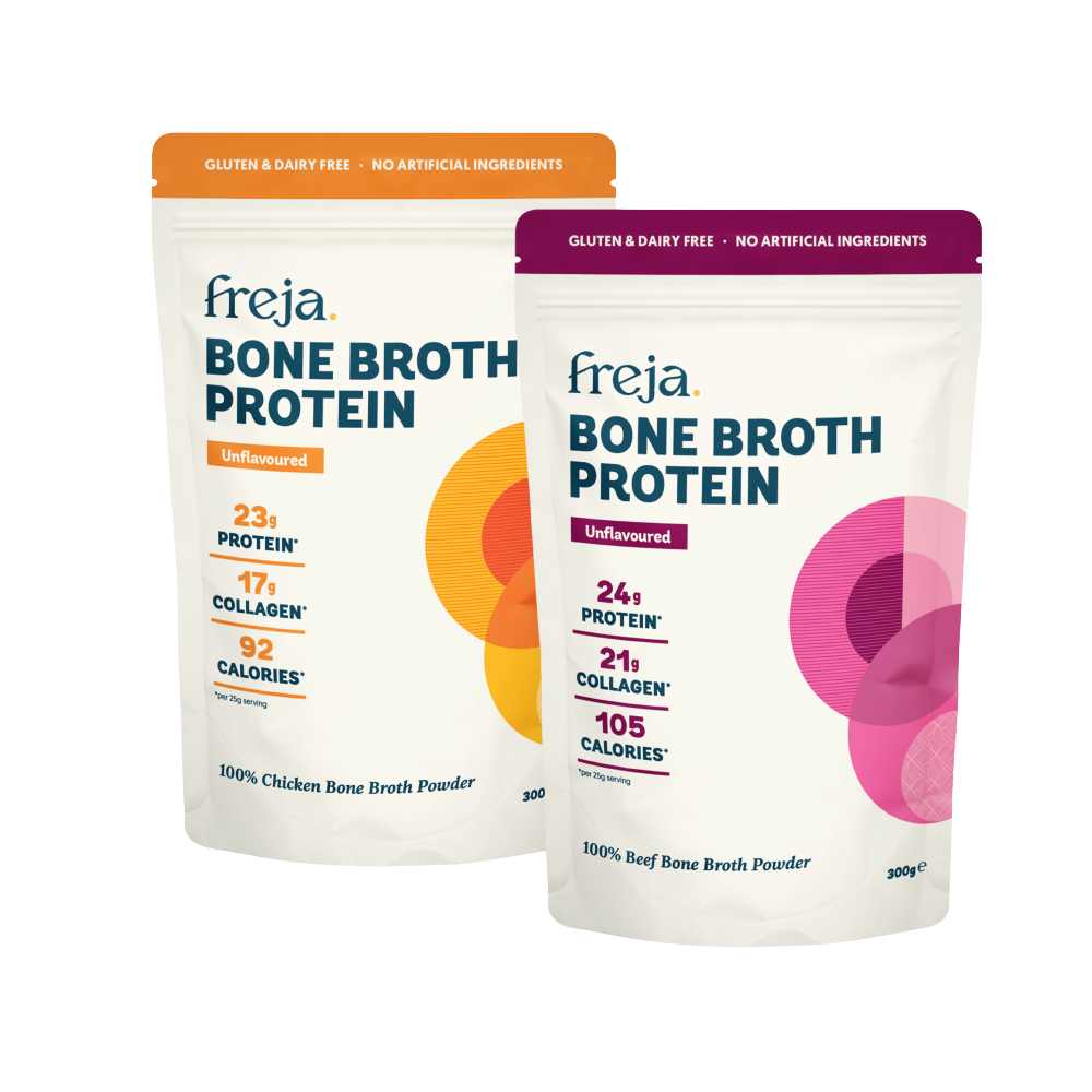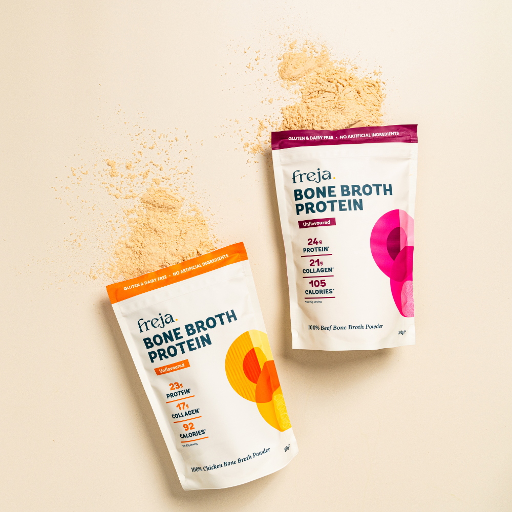 Enjoy all the benefits of our pure chicken and beef bone broth powder.