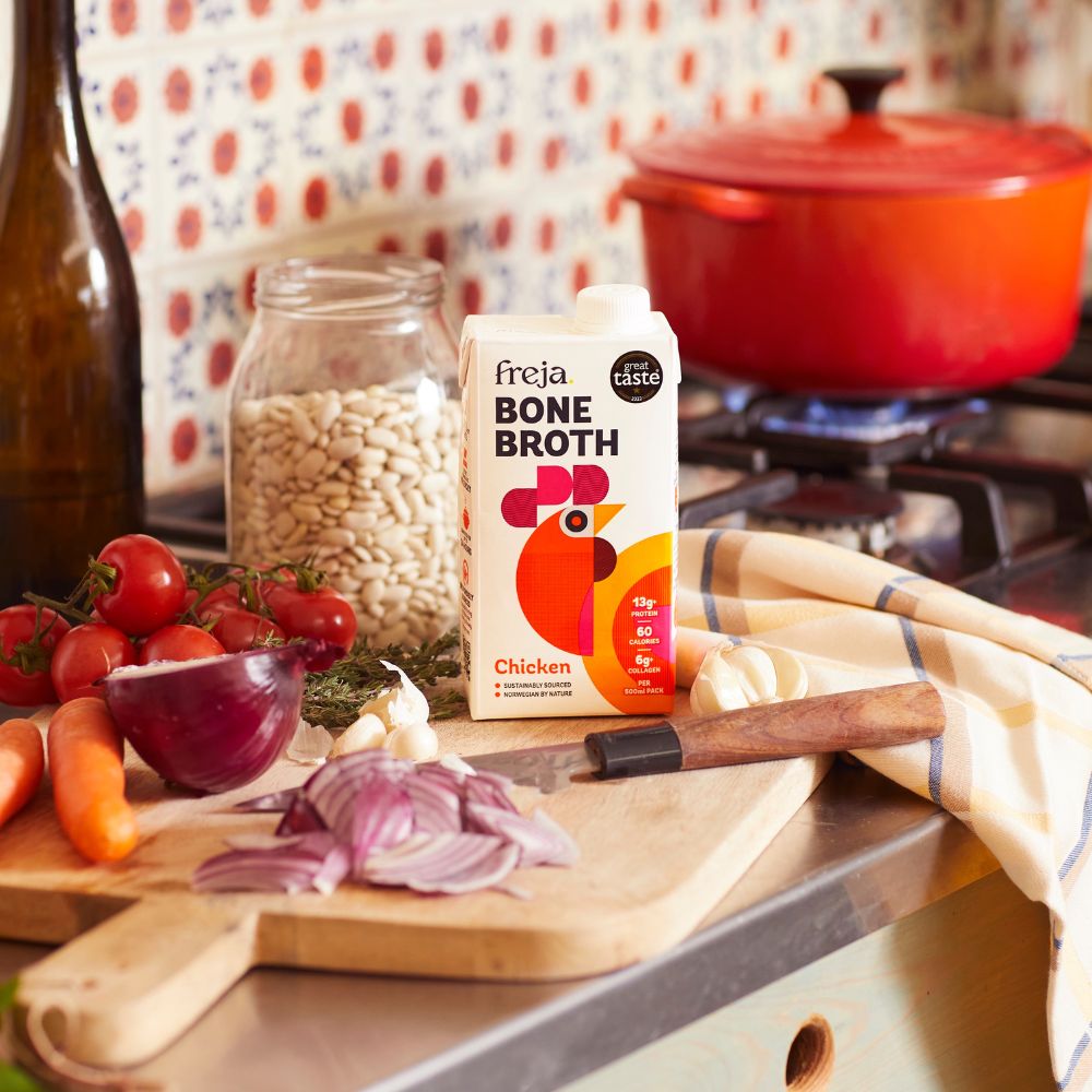 This deliciously high-protein chicken bone broth combines award-winning taste with natural nutrition.